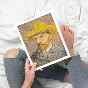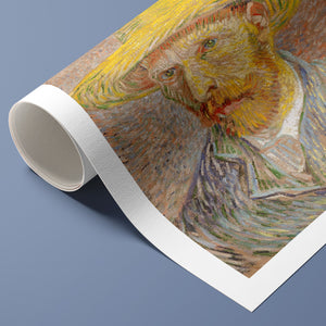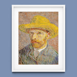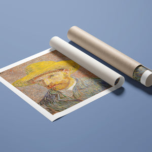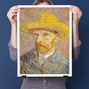 Discover Vincent van Gogh's "Self Portrait with a Straw Hat," a vintage Post-Impressionist painting from 1887. Featuring the artist in a straw hat with intense eyes and a vibrant, expressive style, this oil painting highlights van Gogh's distinctive brushwork and emotional depth.