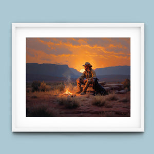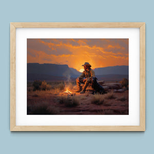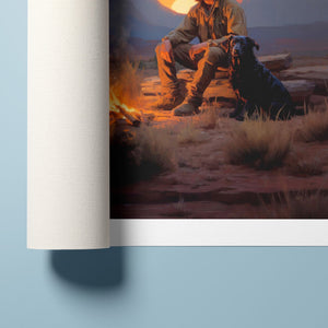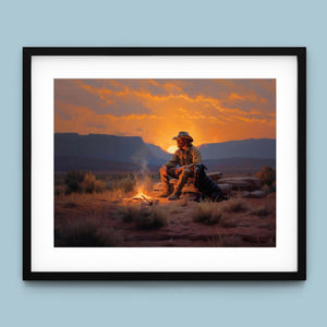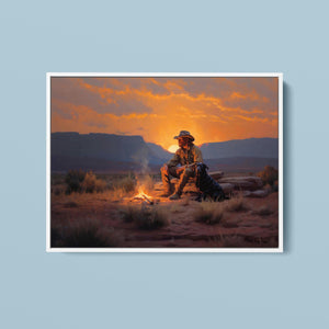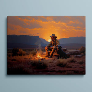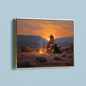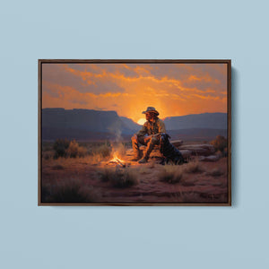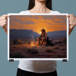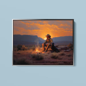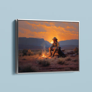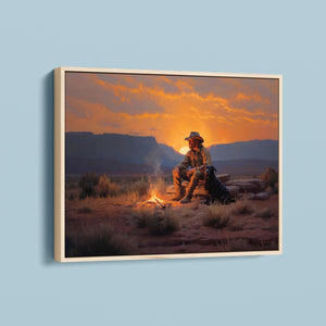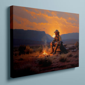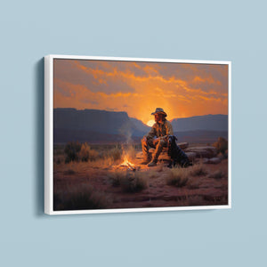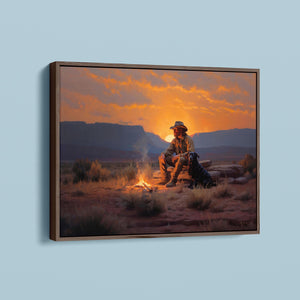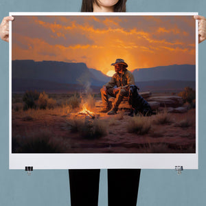 Settin' Down Dusty Roots - Cowboy and Dog by the Campfire at Sundown