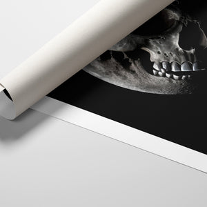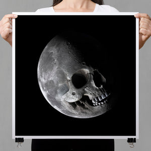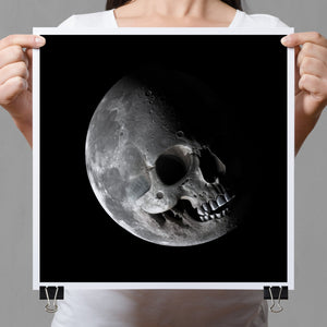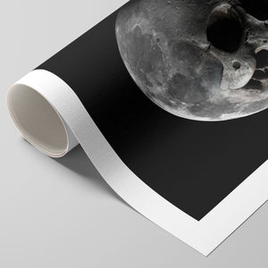 "Skull Moon" blends celestial imagery with a macabre twist, presenting a hauntingly surreal depiction of the lunar surface. This black-and-white illustration reveals the moon's craters in the shape of a skull, creating an eerie and gothic atmosphere. The artwork evokes a sense of mystery and darkness, combining elements of horror and fantasy to create a chilling, otherworldly scene. Ideal for those who appreciate symbolic and imaginative interpretations of space.