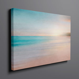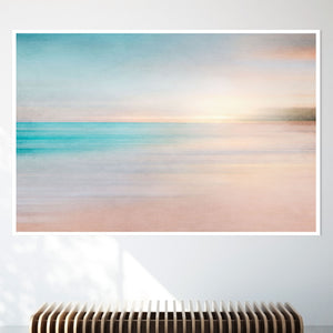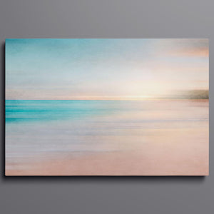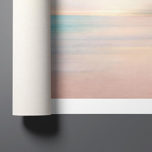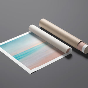 Immerse yourself in the soft pastel hues of "Skyline," an abstract landscape that beautifully captures the calm essence of sunrise or sunset over the horizon. The warm blend of blue, beige, and yellow tones, along with smooth brushstrokes, creates a serene and ethereal effect, inviting a tranquil sense of peace. This minimalistic seascape offers a soothing atmosphere with its delicate gradient and gentle textures, perfect for quiet, reflective spaces.