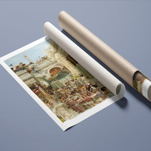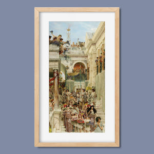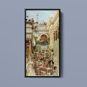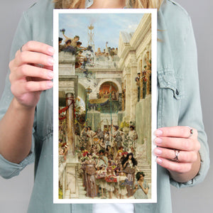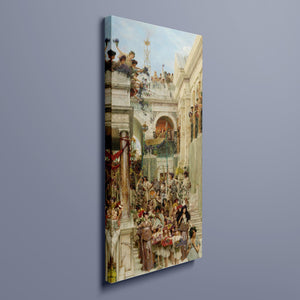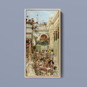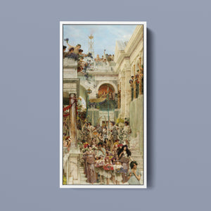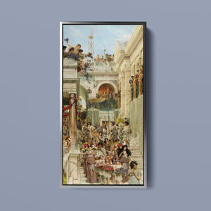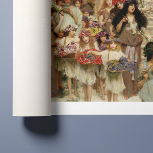 Spring by Lawrence Alma-Tadema transports viewers to a grand Victorian celebration, with finely dressed figures amidst classical marble columns and blooming flowers. This elegant painting evokes the warmth and freshness of springtime through its exquisite detail and use of light, making it a timeless masterpiece.