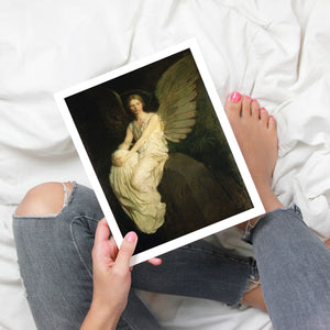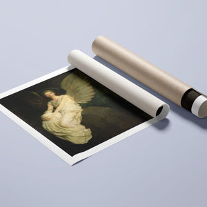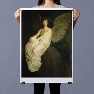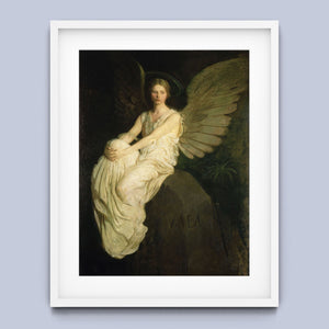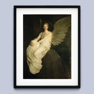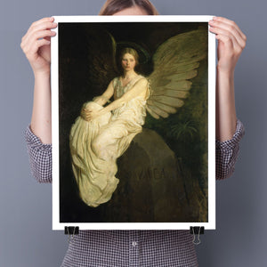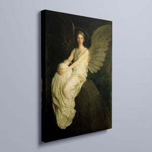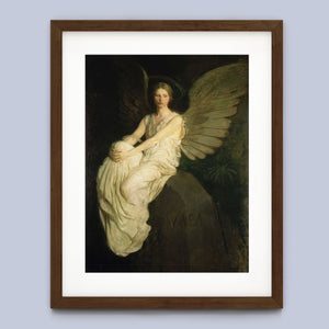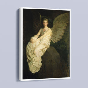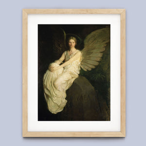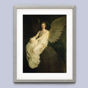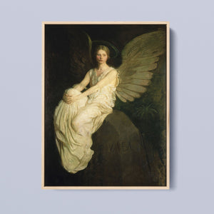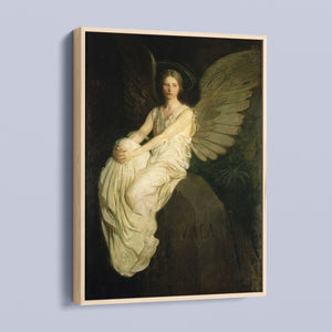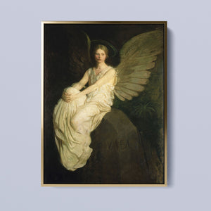 Classic painting by Abbot Handerson Thayer of an ethereal angel with wings and halo, rendered in soft lighting and serene tones, featuring divine beauty and contemplative grace.