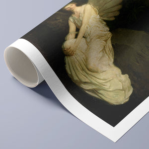 Experience the serene beauty of Stevenson Memorial by Abbot Handerson Thayer. This classic painting depicts an ethereal angel in a contemplative pose, adorned with a halo and draped in a flowing gown. Set against a backdrop of soft greenery and olive tones, the artwork captures the divine and mystical qualities of the angelic figure, rendered with purity and classic elegance in a vertical composition.