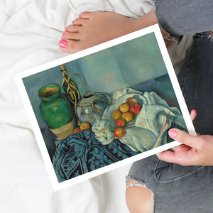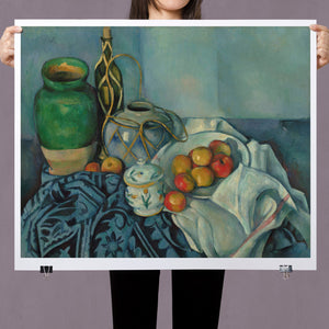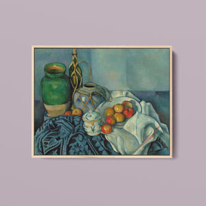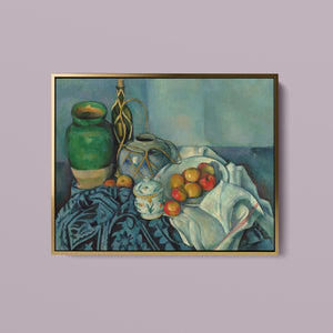 "Still Life with Apples" by Paul Cézanne is a celebrated example of Impressionist art, highlighting Cézanne’s revolutionary approach to still life painting. The artwork presents a meticulously arranged composition of apples and everyday objects, rendered with Cézanne’s characteristic brushstrokes and vibrant color palette. The painting’s structured yet dynamic arrangement reflects Cézanne’s exploration of form and perspective, making it a key work in the evolution of modern art. With its rich textures and nuanced colors, this piece exemplifies Cézanne’s mastery in capturing both the essence of ordinary subjects and the subtleties of light and shadow.