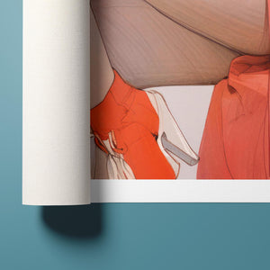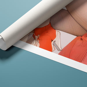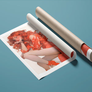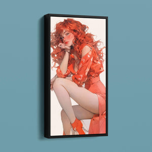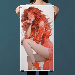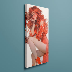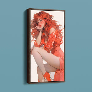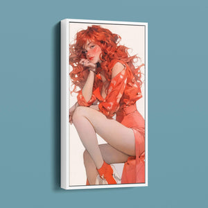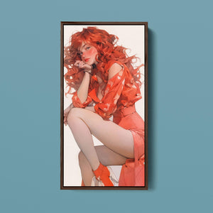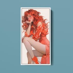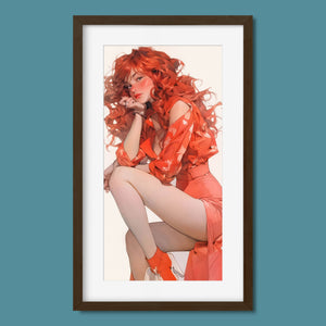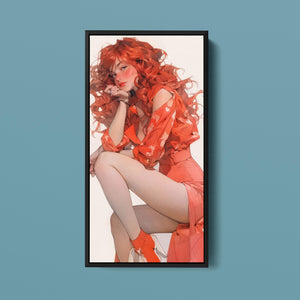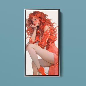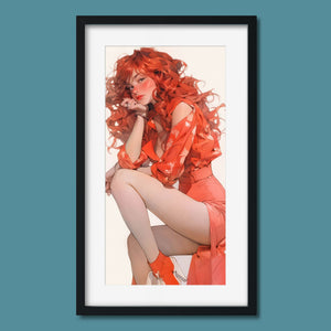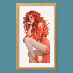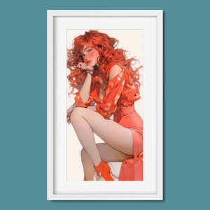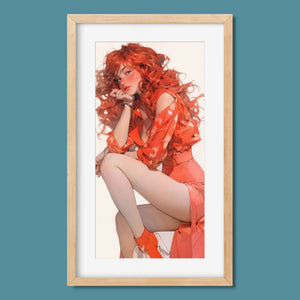 "Straight FIRE" is an enchanting fashion illustration that captures the essence of youthful elegance and contemplation. This artwork features a striking redhead seated in a moment of daydreaming, her flowing hair reflecting vibrant hues of red and orange. The delicate posture and thoughtful expression exude an ethereal charm, while the chic beige and white background complements the fiery hair, emphasizing the subject's stylish demeanor. This piece combines artistry and fashion, making it a captivating addition to any art collection.