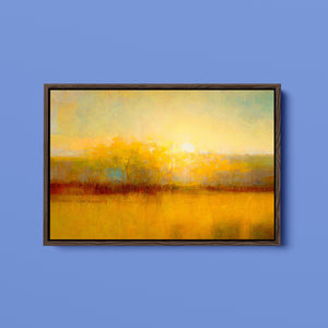 Same high quality gallery-wrapped stretched canvas showcased in a distinctive wood float frame. Available in Black, White, Silver, Gold, Natural/Oak, or Walnut/Espresso.