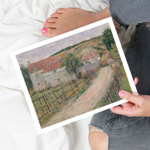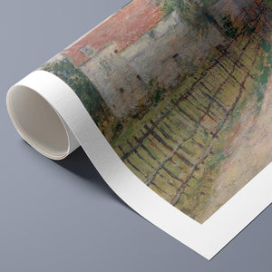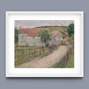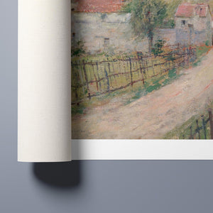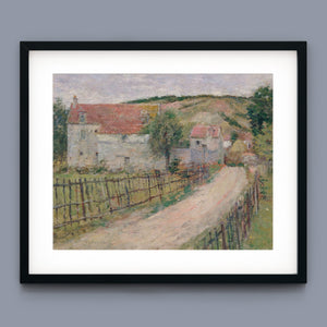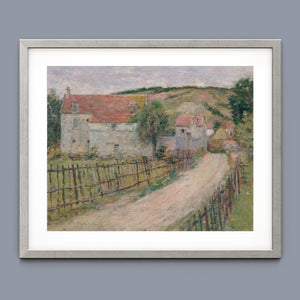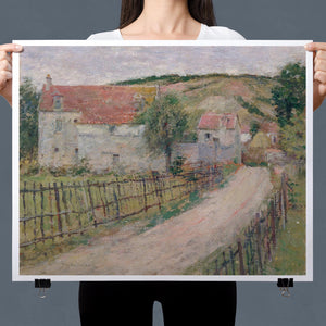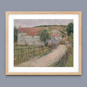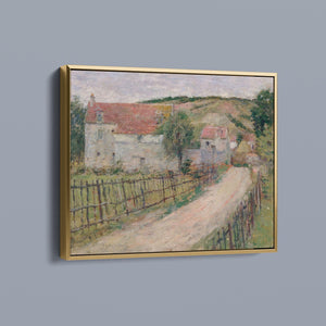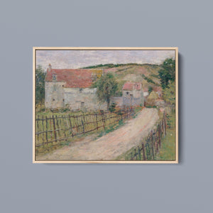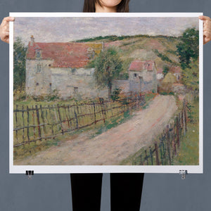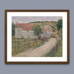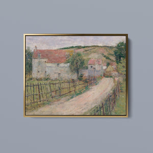 "The Old Mill (Vieux Moulin)" by Theodore Robinson, painted around 1892, exemplifies the artist's impressionist style with its vivid portrayal of a rustic mill in a rural setting. This artwork showcases Robinson’s adept use of color and light to convey the serene beauty of the countryside. The painting features a dynamic brushstroke technique that brings texture and life to the scene, reflecting the quiet charm of the old mill amidst its natural surroundings. Robinson's attention to the play of light on the structure and the landscape highlights his skill in capturing the essence of rural life and the subtle interplay between nature and architecture. This piece not only represents Robinson’s contribution to American impressionism but also his ability to evoke a sense of timeless tranquility and natural beauty in his work.