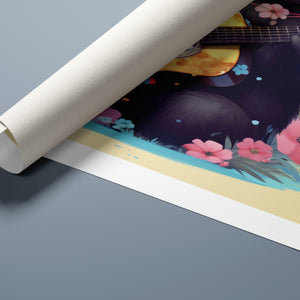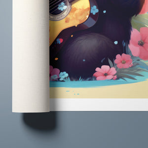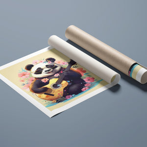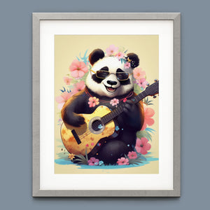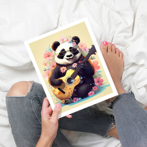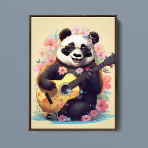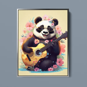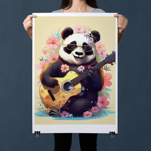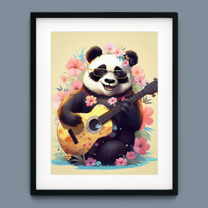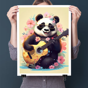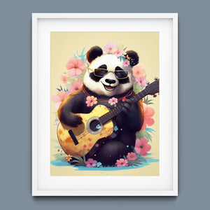 The Panda Luau Groove is a vibrant and playful artwork that brings the spirit of a tropical party to life. The 3x4 vertical canvas features a cheerful panda sporting sunglasses and a lei, jamming with a guitar amidst a backdrop of festive flowers and lively colors. With its blend of black, white, pink, and blue tones, this piece captures the joy and excitement of a luau celebration. Perfect for adding a touch of fun and whimsy to any space, The Panda Luau Groove is a delightful depiction of nature, culture, and leisure.