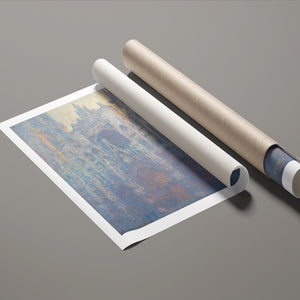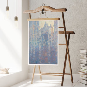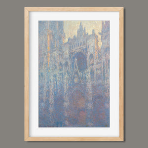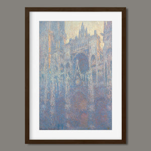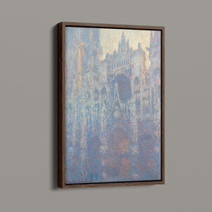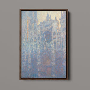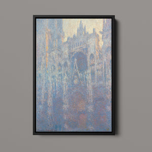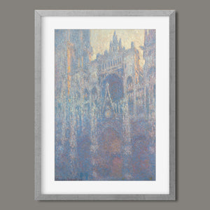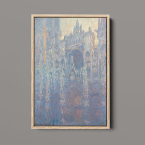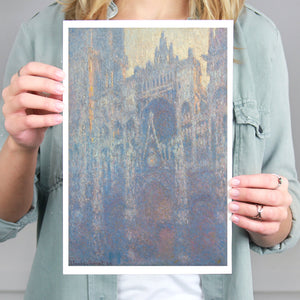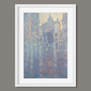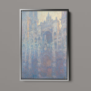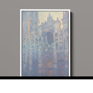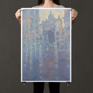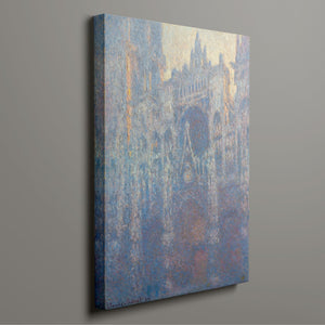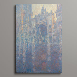"Rouen Cathedral, West Façade, 1894" by Claude Monet captures the ethereal beauty of this Gothic architectural marvel through the Impressionist lens. This vertical painting depicts the intricate façade of the French cathedral with soft blues, purples, and silvers, rendered in pastel hues that evoke the atmospheric quality of dawn or dusk. Monet's masterful brushwork and light effects highlight the historical and architectural significance of the cathedral, showcasing its grandeur and texture in a hazy, atmospheric setting. The painting reflects Monet’s fascination with capturing the play of light and the passage of time on this iconic landmark.