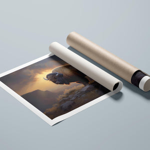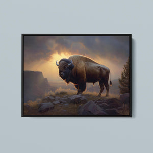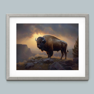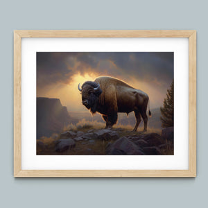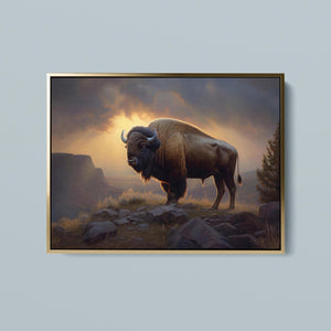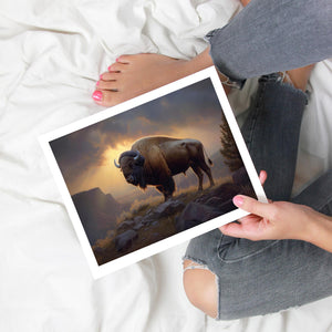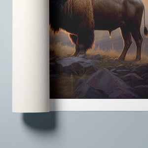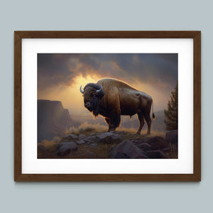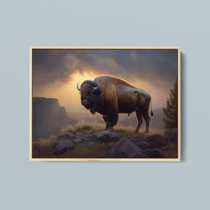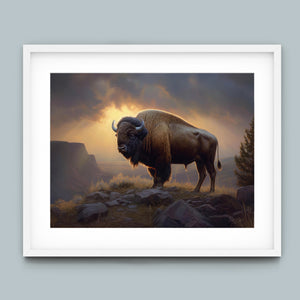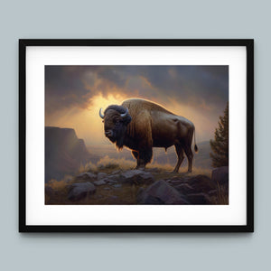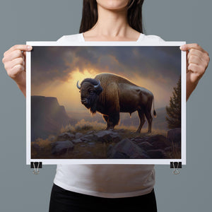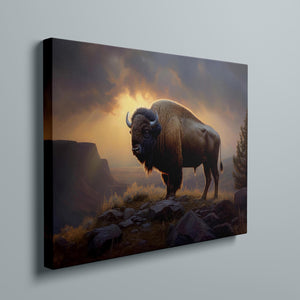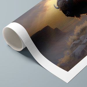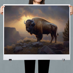 Thunder Rolls on Bison Ridge - Classic Western Wildlife Buffalo on a Ridge