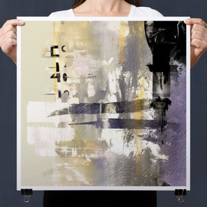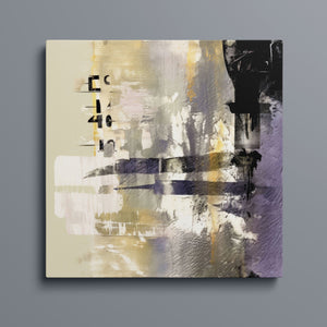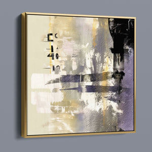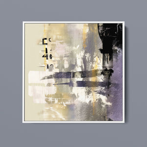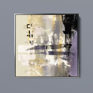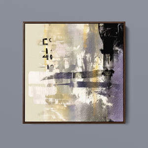 "Typo - 2040" showcases a contemporary abstract design with a focus on numerical elements. This modern canvas features layered textures and muted tones of black, gold, gray, and beige, creating a sophisticated and artistic expression of numbers.