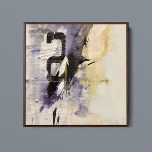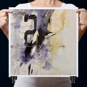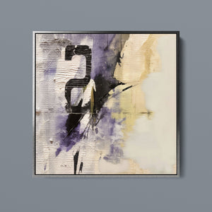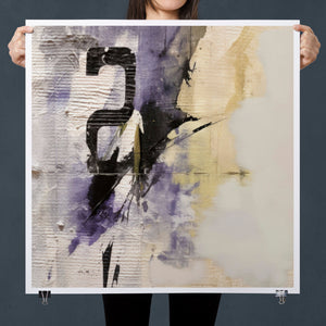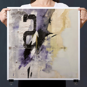 "Typo - Too Two to 2" is a striking abstract artwork that features a bold numeral design in a contemporary style. With a textured surface and a blend of black, violet, yellow, and beige, this piece combines grunge aesthetics with artistic expression.