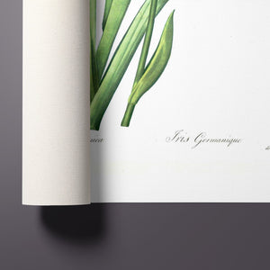 An elegant botanical illustration of the Iris Germanica, highlighting its intricate details.