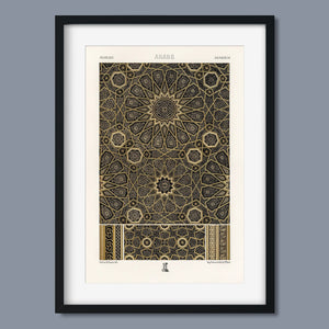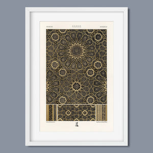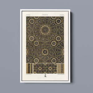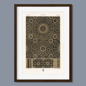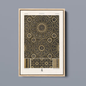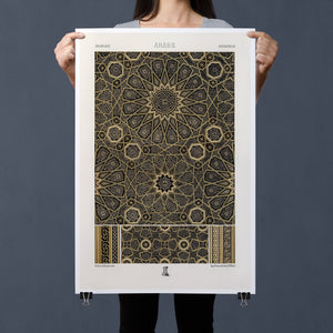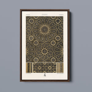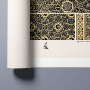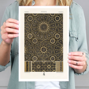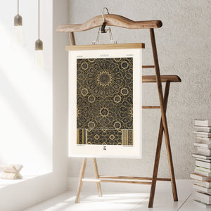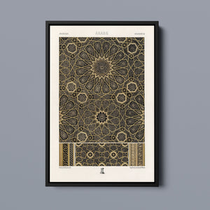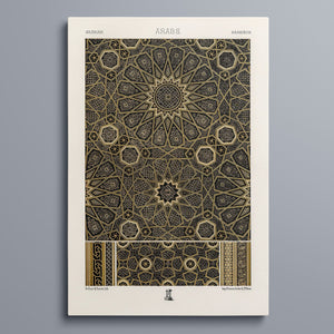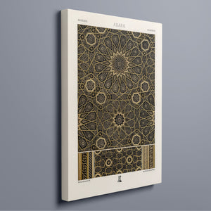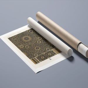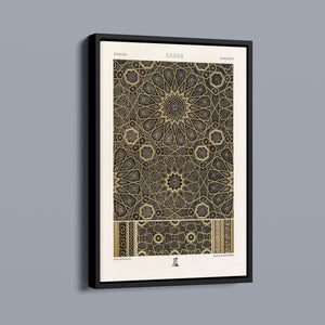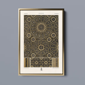 "Vintage Fabric Design" is an exquisite representation of intricate craftsmanship that showcases a stunning arabesque pattern. This artwork features a harmonious blend of black, gold, and bronze, evoking a sense of historical elegance and cultural richness. The symmetrical and ornate geometric motifs pay homage to traditional Islamic art, making it a perfect piece for those who appreciate the beauty of vintage designs and intricate textiles.