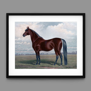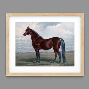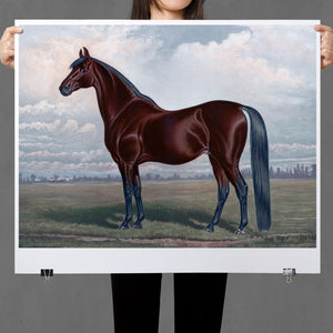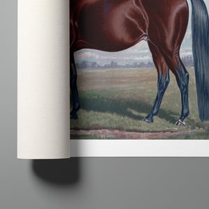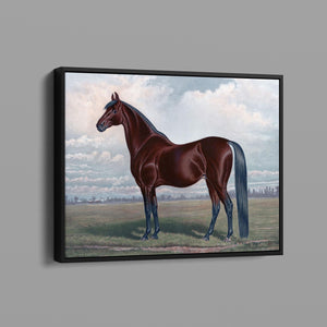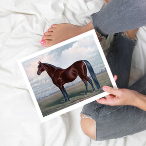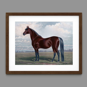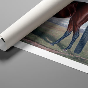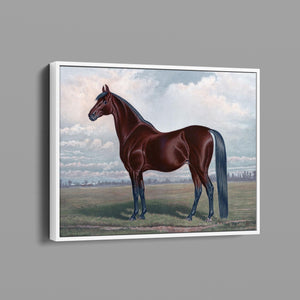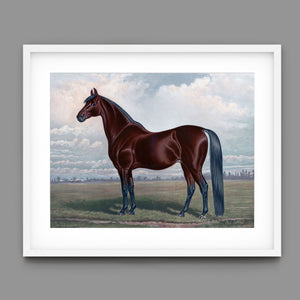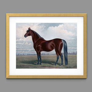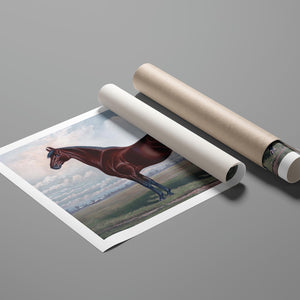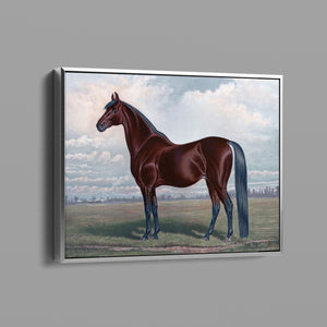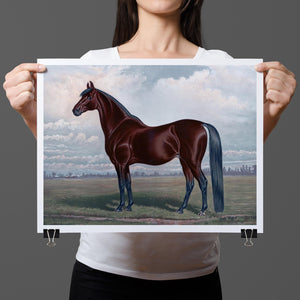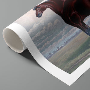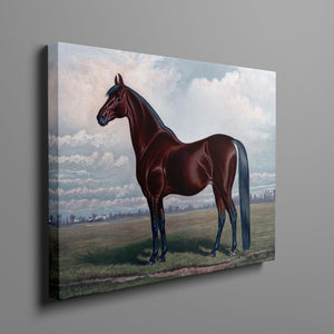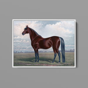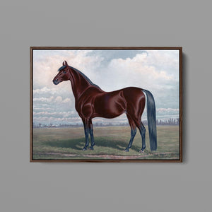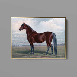 Admire the Vintage Horse Painting, a classic art piece that depicts a chestnut horse standing gracefully in a serene rural field. With a lifelike portrayal against an overcast sky, this vintage artwork highlights the powerful elegance and natural beauty of the equine form.