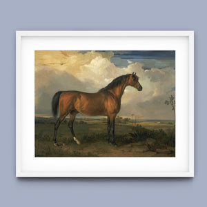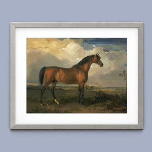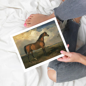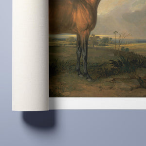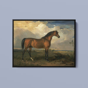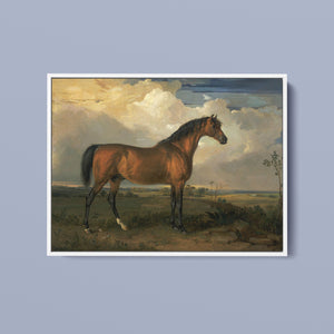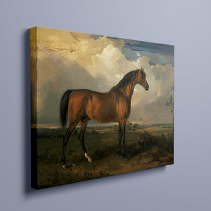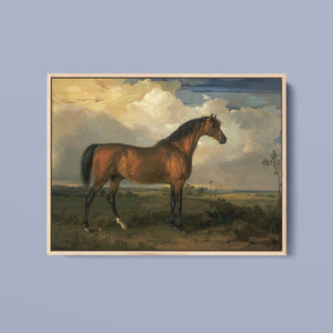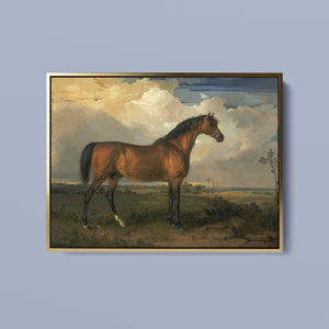Discover the Vintage Horse Painting, a classic artwork showcasing a majestic horse standing in a tranquil rural field. With gentle hues of beige, brown, and gray set against a calm dusk sky, this piece captures the serene beauty of equine life in a peaceful pastoral scene.