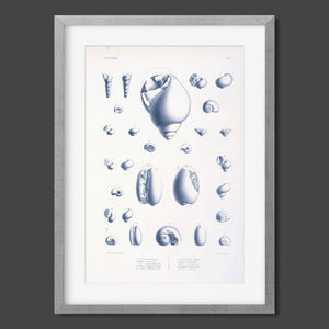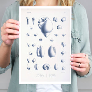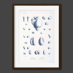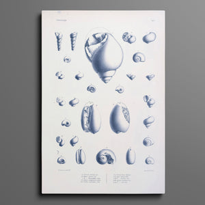 Vintage illustrations of various sea creatures and shells, showcasing intricate details and textures, ideal for marine enthusiasts and educational displays.