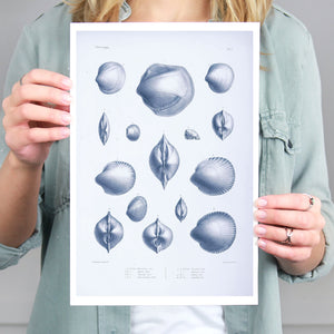 Vintage illustrations of various sea creatures and shells, showcasing intricate details and textures, ideal for marine enthusiasts and educational displays.