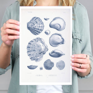 Vintage illustrations of various sea creatures and shells, showcasing intricate details and textures, ideal for marine enthusiasts and educational displays.