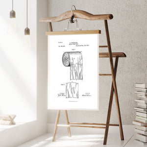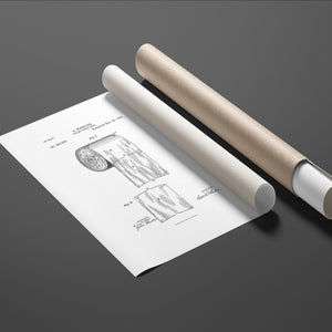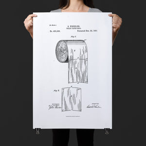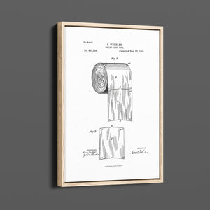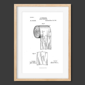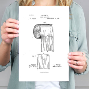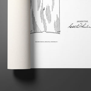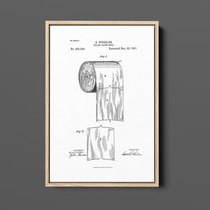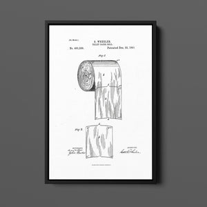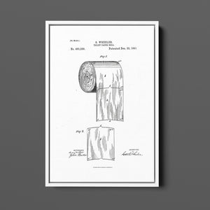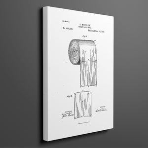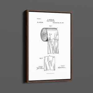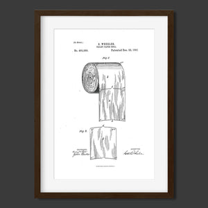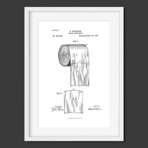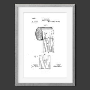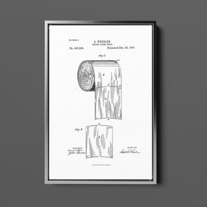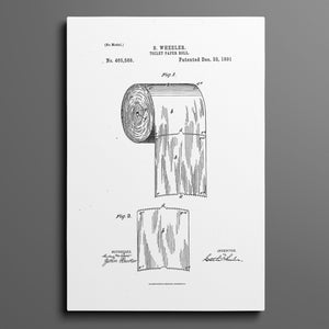 "Vintage Patent Illustrations - Toilet Paper" features an antique patent drawing from 1891, showcasing the innovative design of toilet paper. This unique illustration includes detailed diagrams of the roll, perforations, and dispenser mechanisms, capturing the essence of hygiene and convenience. Perfect for collectors of quirky historical artifacts or anyone interested in the evolution of everyday items, this artwork brings a touch of nostalgia and humor to any space.