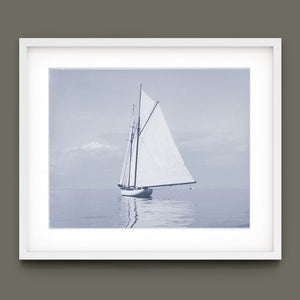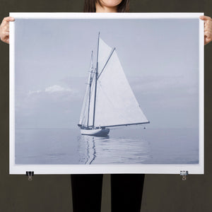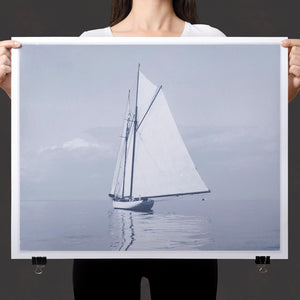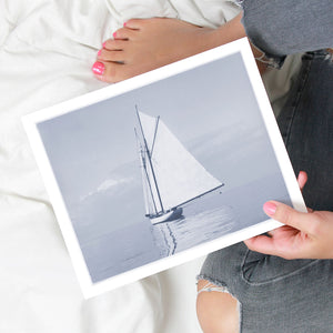 The Vintage Sailboat Photo offers a timeless maritime scene in classic black and white. This horizontal, 5x4 image captures the serene beauty of a sailboat navigating calm waters, with reflections and sails creating a tranquil, nostalgic atmosphere. Ideal for nautical and travel enthusiasts, this vintage photograph evokes a sense of adventure and leisure, making it perfect for decor that celebrates the elegance of yachting and the sea.