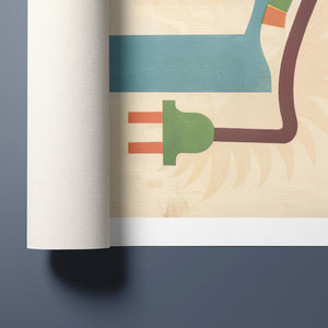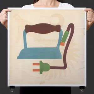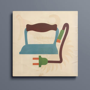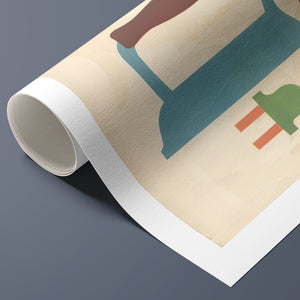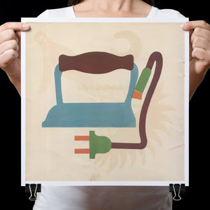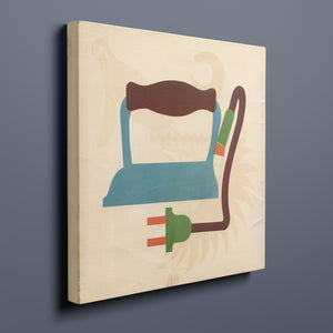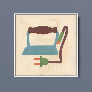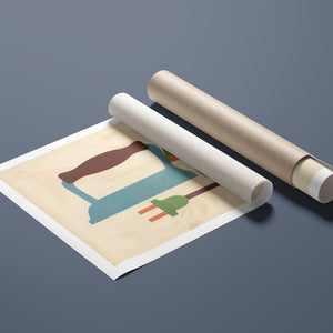 "Vintage Public Domain" offers a charmingly retro illustration featuring a minimalistic chair against a backdrop of muted, pastel tones. The artwork combines beige, blue, and brown with a paper texture to evoke a sense of nostalgia and simplicity. This piece captures the essence of mid-century design with its abstract, graphic elements and whimsical silhouette, making it a delightful addition to any decor that appreciates vintage and artistic flair.