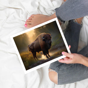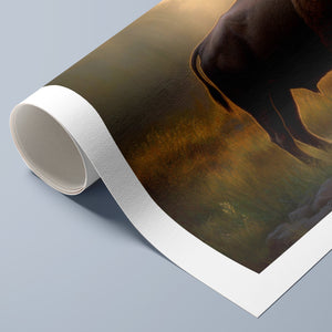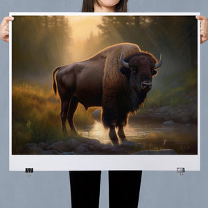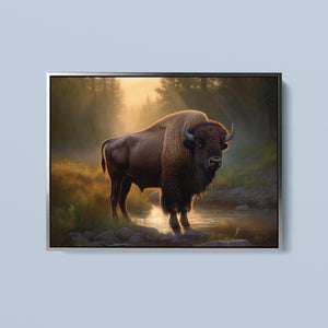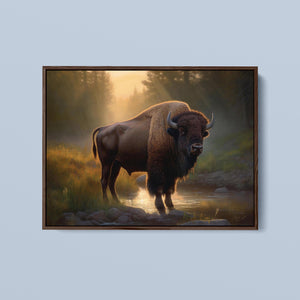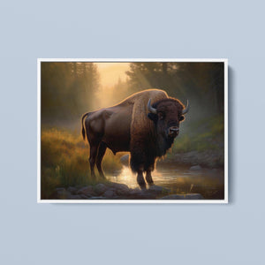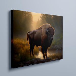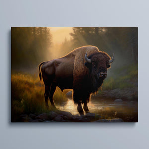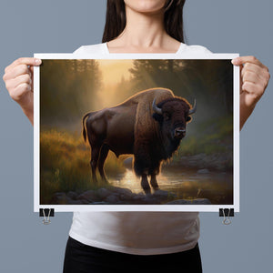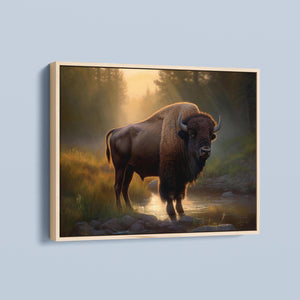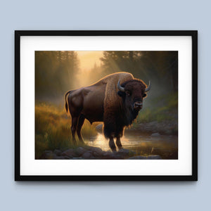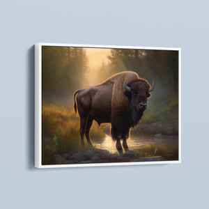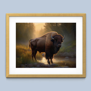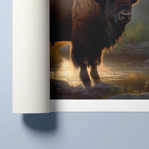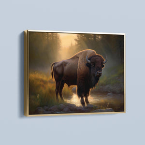Wading for the Sun to Rise - Classic Western Wildlife Buffalo by a Stream