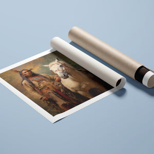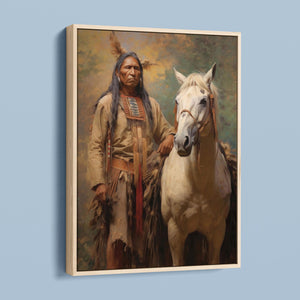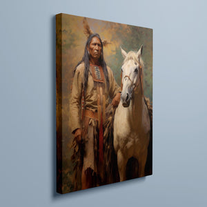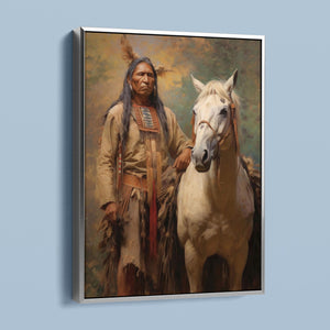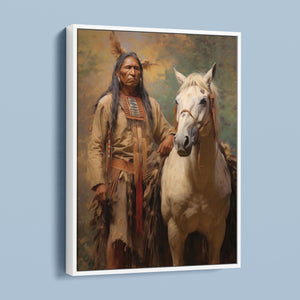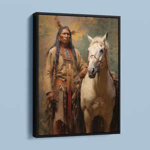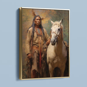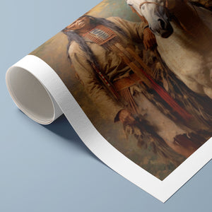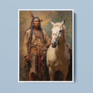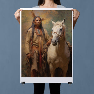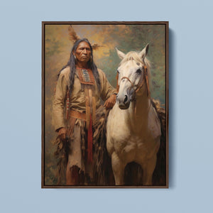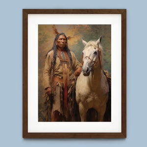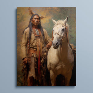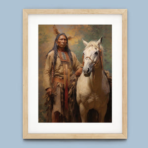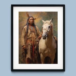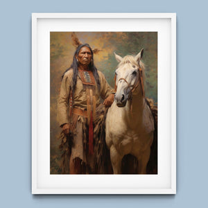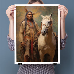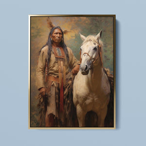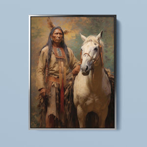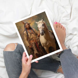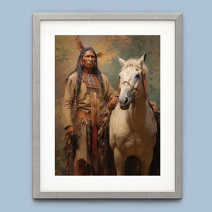 War Horse - Classic Portrait of an American Indian Brave and Horse