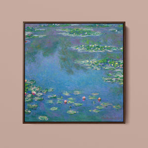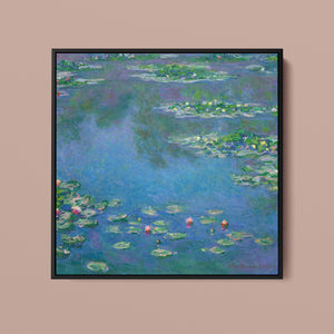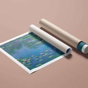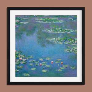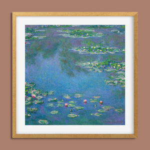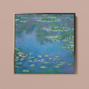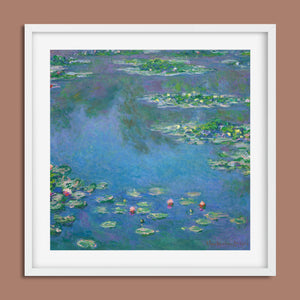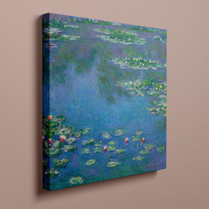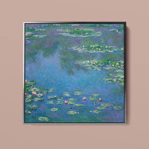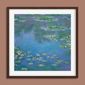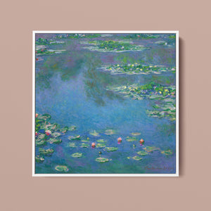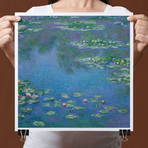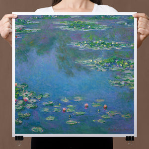 "Water Lilies 1906" by Claude Monet is a stunning example of classic impressionist art. The painting portrays a serene pond covered with vibrant lilies, reflecting the soft pastel tones of blue and green. Monet’s expert use of light, shadows, and harmonious color creates a peaceful and tranquil atmosphere, showcasing the natural beauty of the garden at Giverny. The artwork captures the essence of impressionism with its fluid brushstrokes and focus on the serene beauty of the outdoor pondscape.