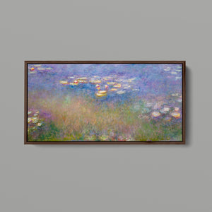 Same high quality gallery-wrapped stretched canvas showcased in a distinctive wood float frame. Available in Black, White, Silver, Gold, Natural/Oak, or Walnut/Espresso.