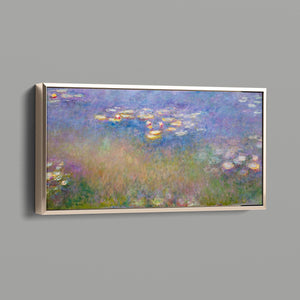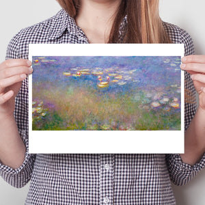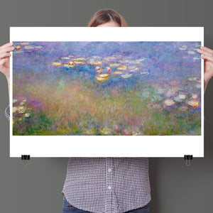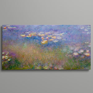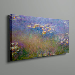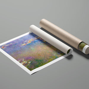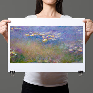 Claude Monet's "Water Lilies - Bright Colors" is a stunning impressionist masterpiece that captures the essence of his beloved garden in Giverny. The painting features vibrant yellows, blues, and greens that create a luminous and tranquil atmosphere. With its delicate depiction of water lilies floating on the surface of a serene pond, the artwork invites viewers into a world of peace and beauty. The hazy reflections and soft pastel colors highlight Monet's ability to portray the subtleties of nature, making this piece a timeless representation of impressionist art.