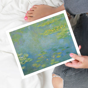 "Waterlilies 1906" by Claude Monet is a classic example of the artist's renowned Impressionist style, painted during his prolific period of experimenting with water lily subjects. This work showcases Monet's fascination with the reflections and interplay of light on water, capturing the serene beauty of his garden pond. The painting is characterized by its rich, vibrant palette and expressive brushstrokes, which convey the fluidity and movement of the water's surface. Monet's use of color creates a sense of depth and tranquility, allowing viewers to experience the peaceful atmosphere of the scene. "Waterlilies 1906" stands as a testament to Monet's innovative approach to landscape painting and his ability to evoke a sense of calm and natural beauty.