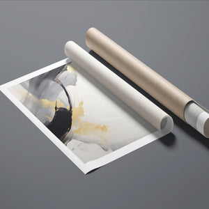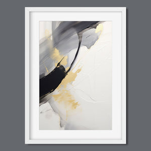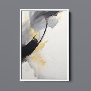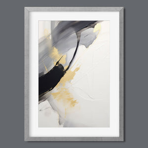 Immerse yourself in the striking contrast of "When Worlds Collide - I," a dynamic abstract piece that explores the intersection of black, white, silver, and gold through bold brushstrokes and textured layers. The swirling patterns and contrasting colors evoke a sense of movement and tension, while the subtle elegance of metallic accents adds a contemporary touch. This modern, minimalistic artwork makes a powerful statement, blending simplicity with artistic complexity in a mesmerizing display of creative expression.