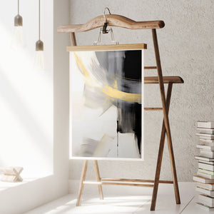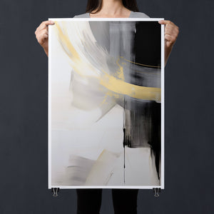"Fluid II" captivates with its graceful swirls and soft motion, a monochromatic abstract artwork that exudes tranquility and subtle elegance. The fluidity of the black, white, and gray palette blends smoothly, creating a flowing wave of dynamic energy and motion. Gentle curves and translucent layers give the impression of movement, while soft yellow highlights add an understated depth to the piece. This contemporary work of art evokes simplicity and refinement, perfect for modern spaces seeking a sense of fluidity and balance.