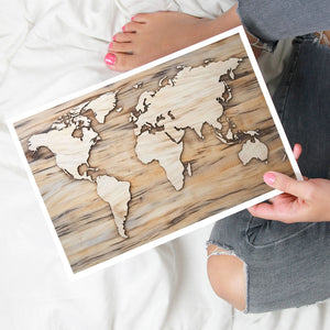 Home World Map - Continents in Wood