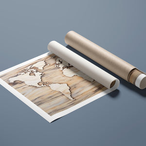 "World Map - Continents in Wood" is an exquisite piece that combines artistry and craftsmanship, featuring a detailed representation of the world map carved into a rich wooden texture. The artwork highlights the continents in a sophisticated palette of black, brown, and beige, evoking a sense of global exploration and connection. Ideal for travel enthusiasts and educators, this wall art brings a warm and natural element to any interior space, perfect for adding character to your home or office.